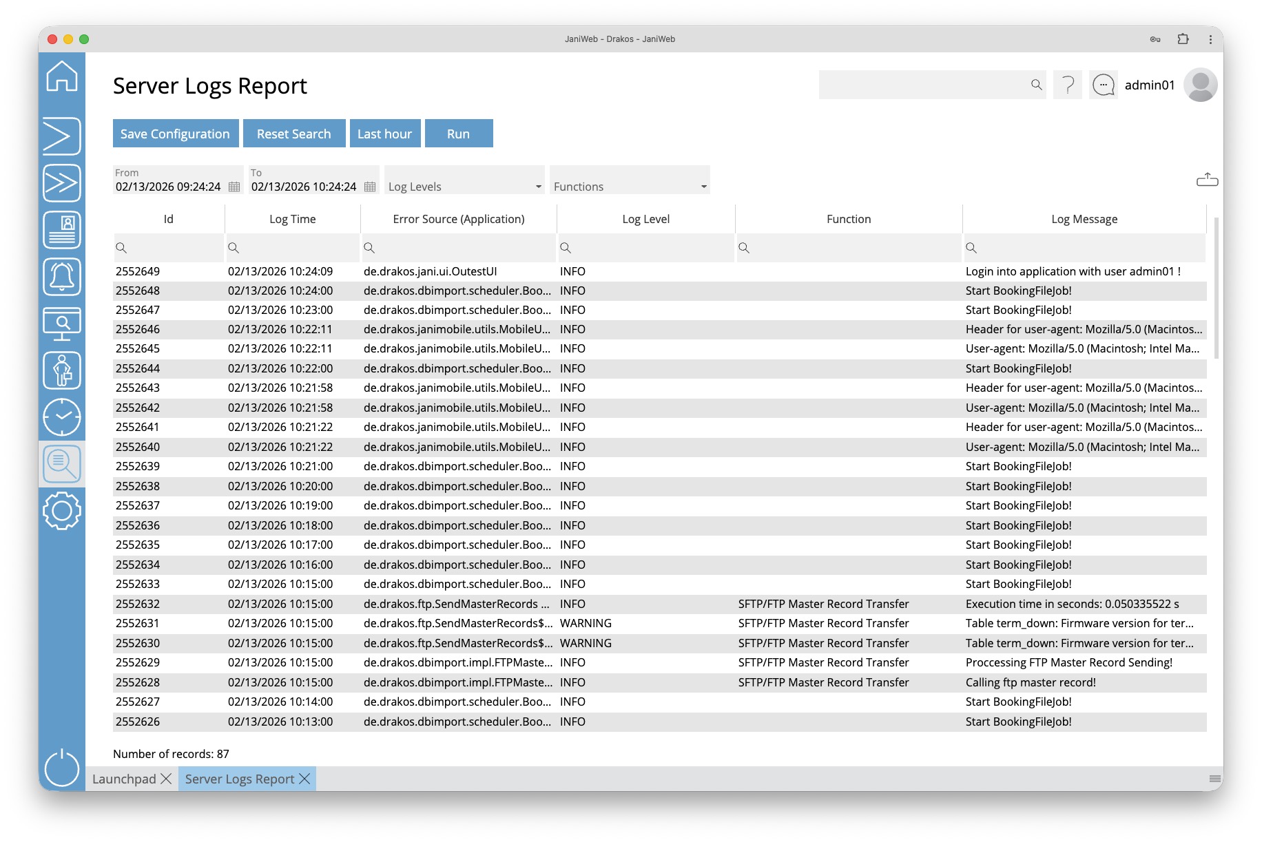 Use the menu item Server Log to display a list of all system events.