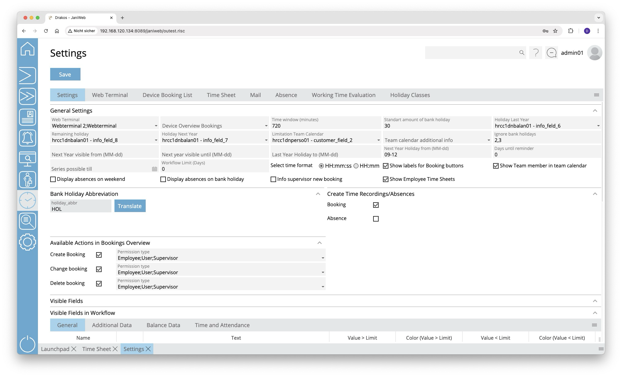 • Booking Type: Shows whether the booking is considered as Present or Absent (this is particularly important for calculating working hours).