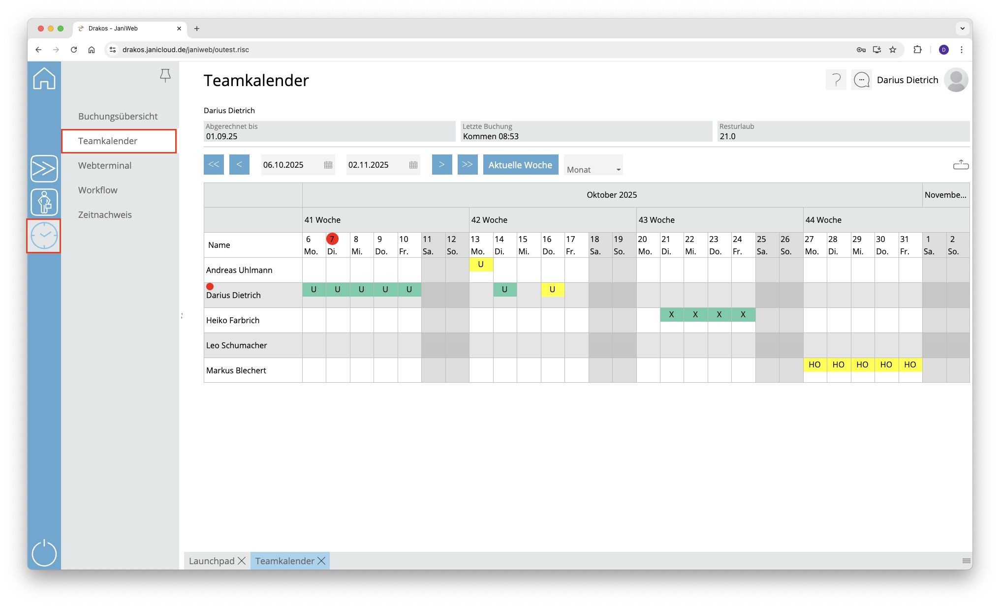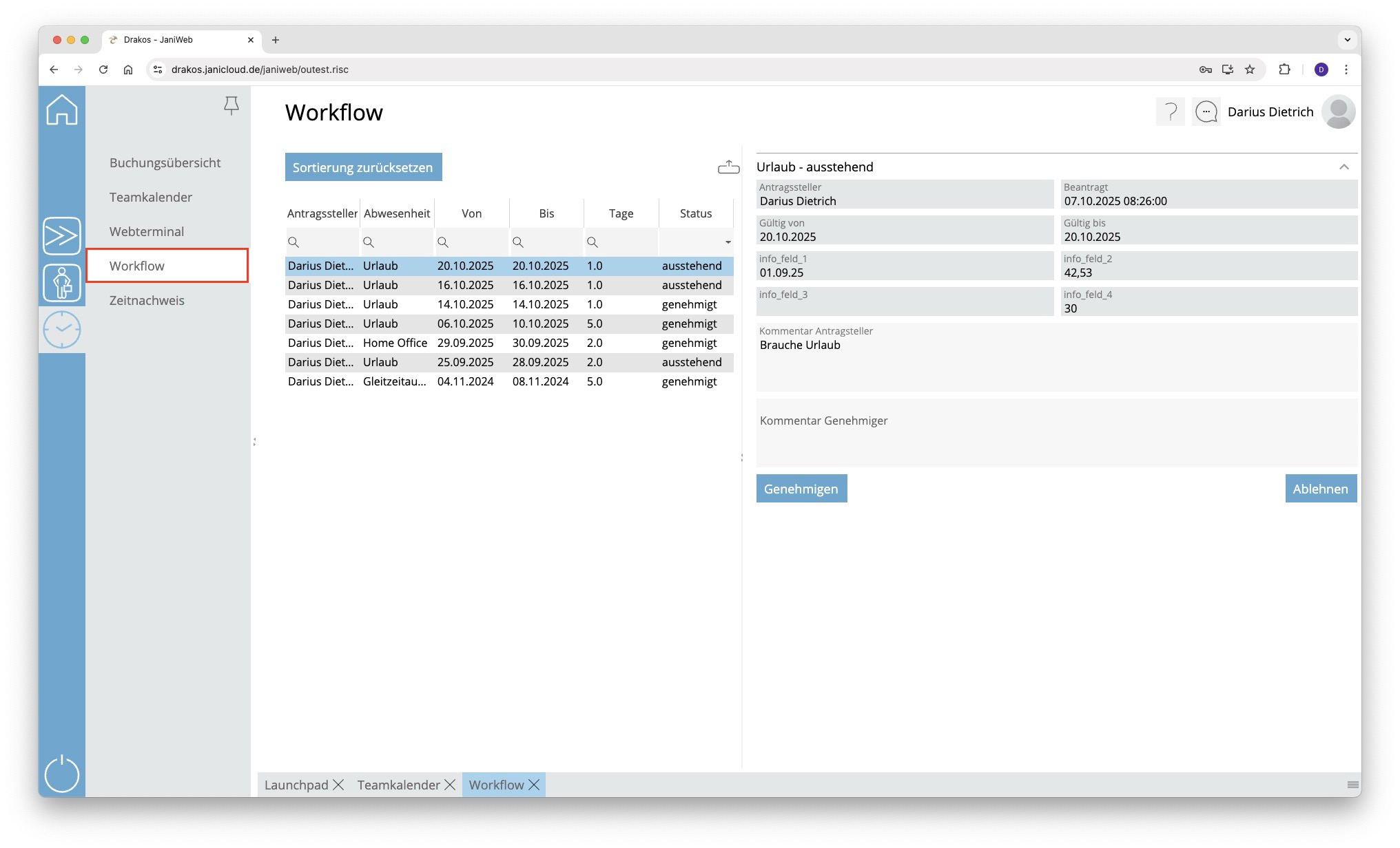 6. Im Menü Workflow finden Sie zurückliegende Abwesenheitsanträge und deren Status