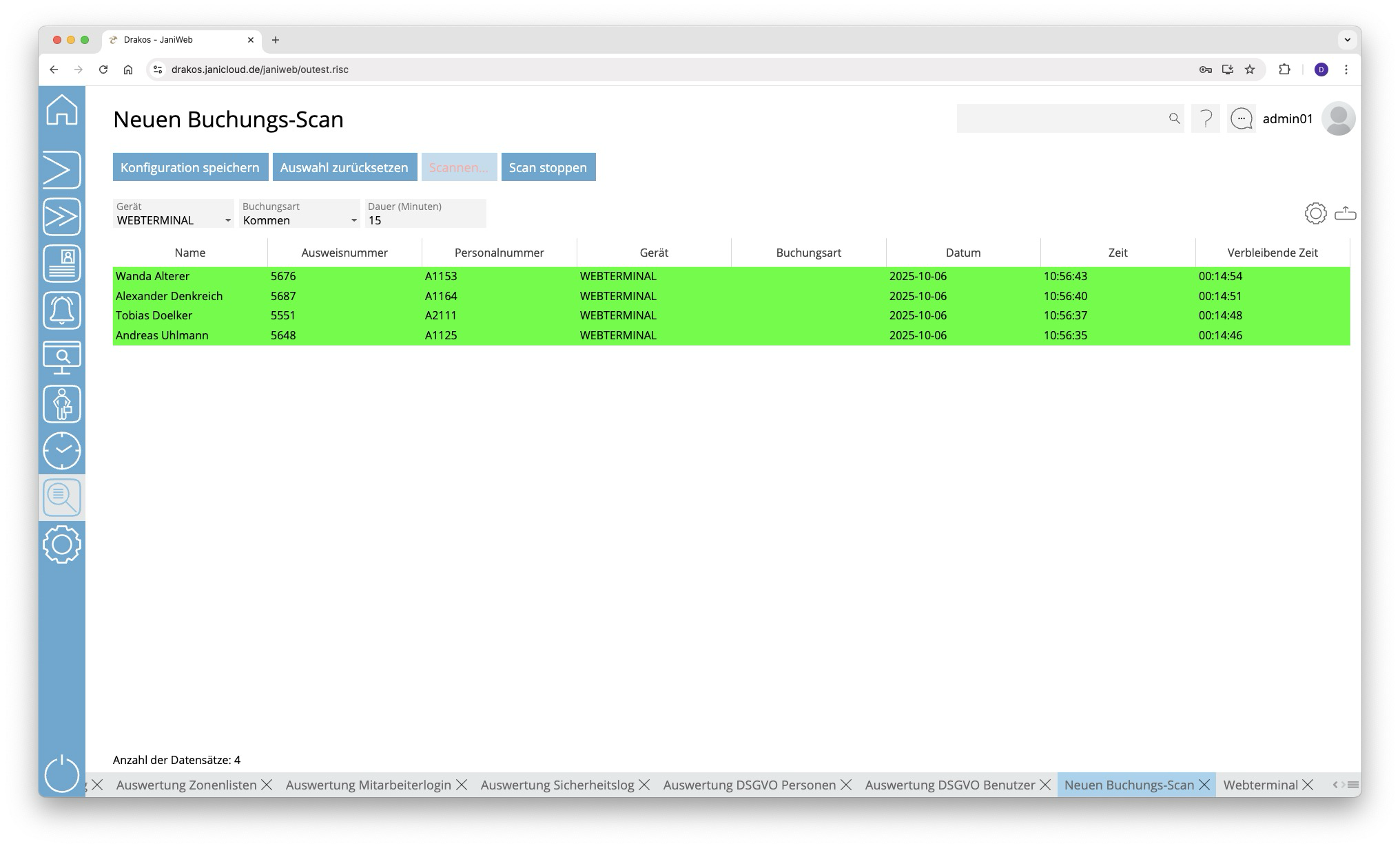 Nutzen Sie diese Auswertung beispielsweise, um Personen anhand einer Buchung eine verbleibende Zeit (etwa für eine Raucherpause) anzuzeigen.