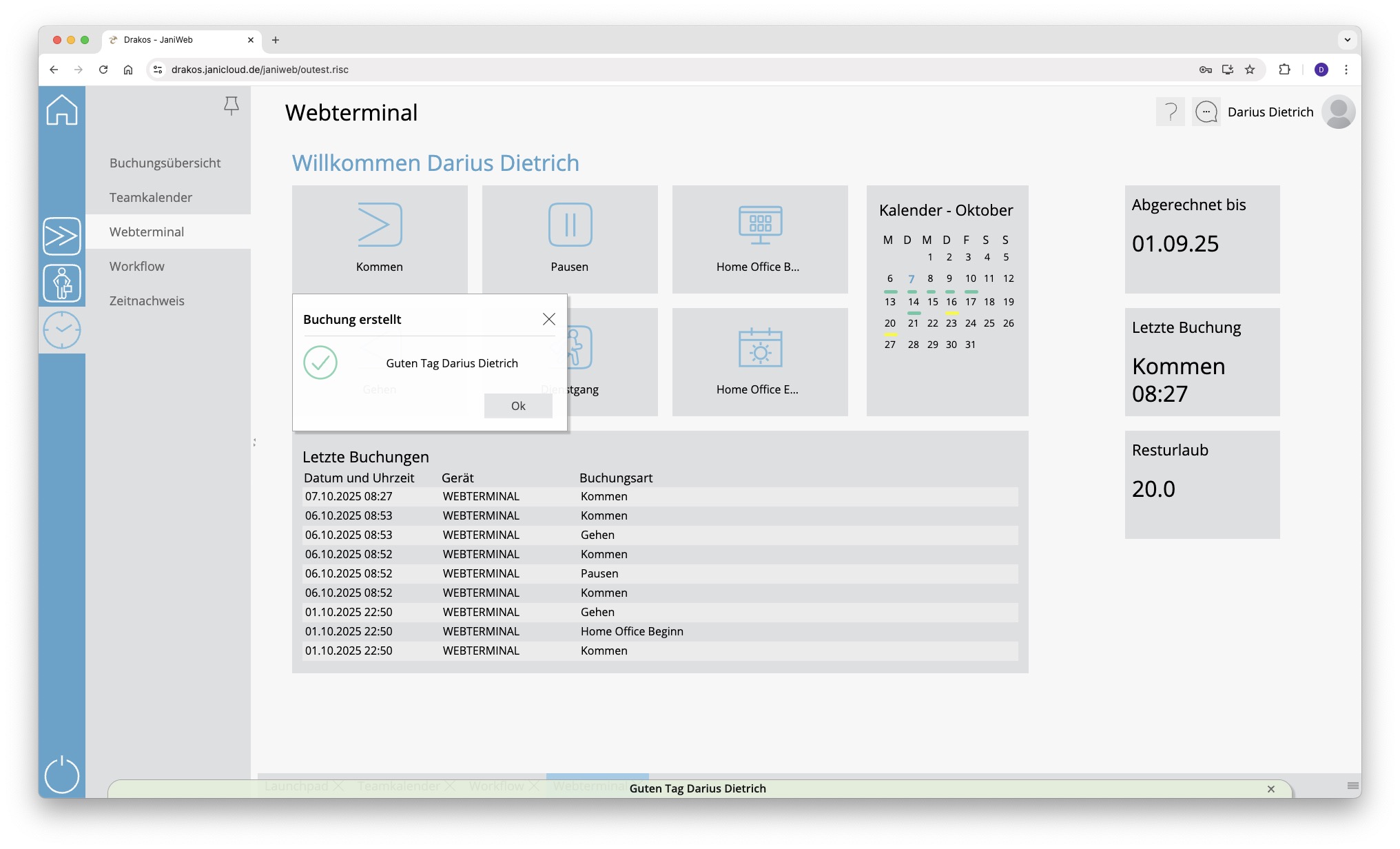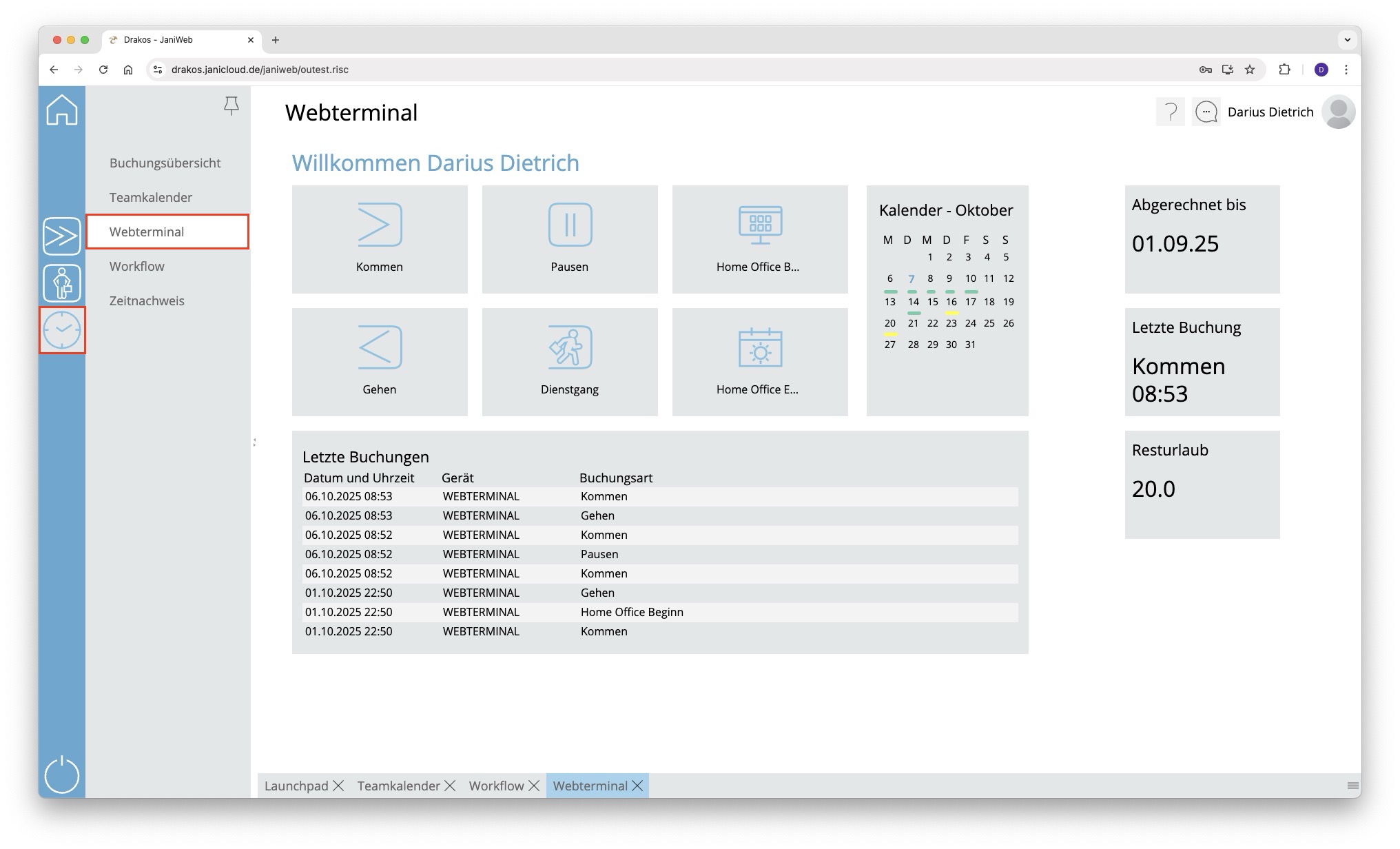Buchungen über das Webterminal erfassen