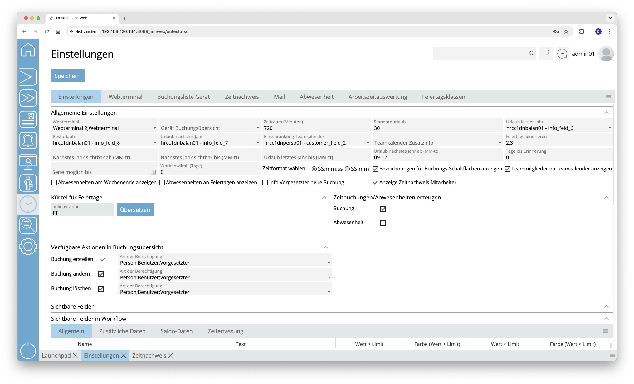 Bezeichnungen für Buchungs-Schaltflächen anzeigen: Aktivieren Sie diese Option, um im Menüpunkt Webterminal zusätzlich zu den Buchungs-Schaltflächen auch ihre Bezeichnungen anzuzeigen.