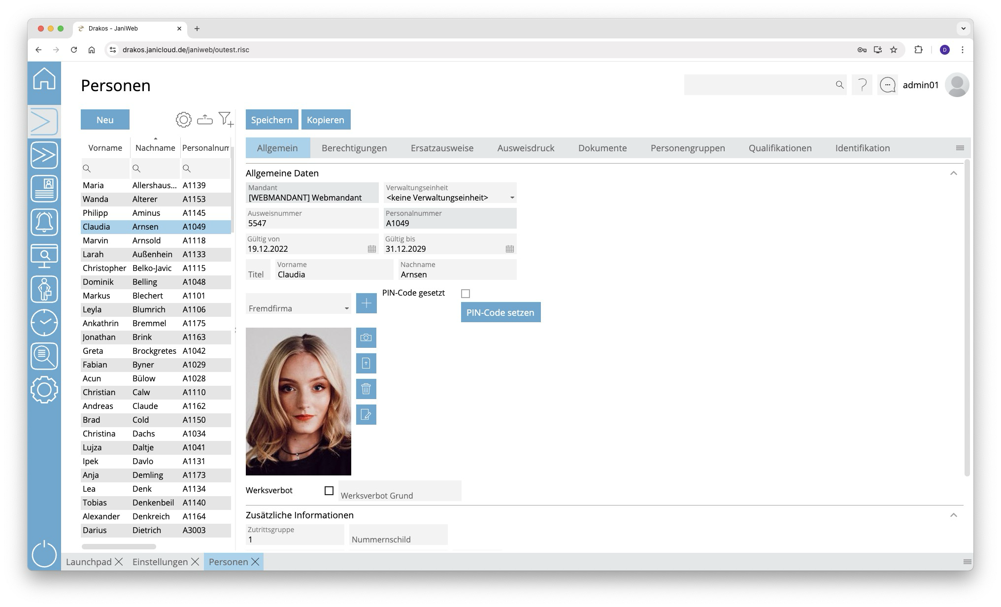 Über den Menüpunkt Personen verwalten Sie den Personalstamm in Ihrem System. Hier können Sie neue Personen anlegen oder Details vorhandener Personen ändern.