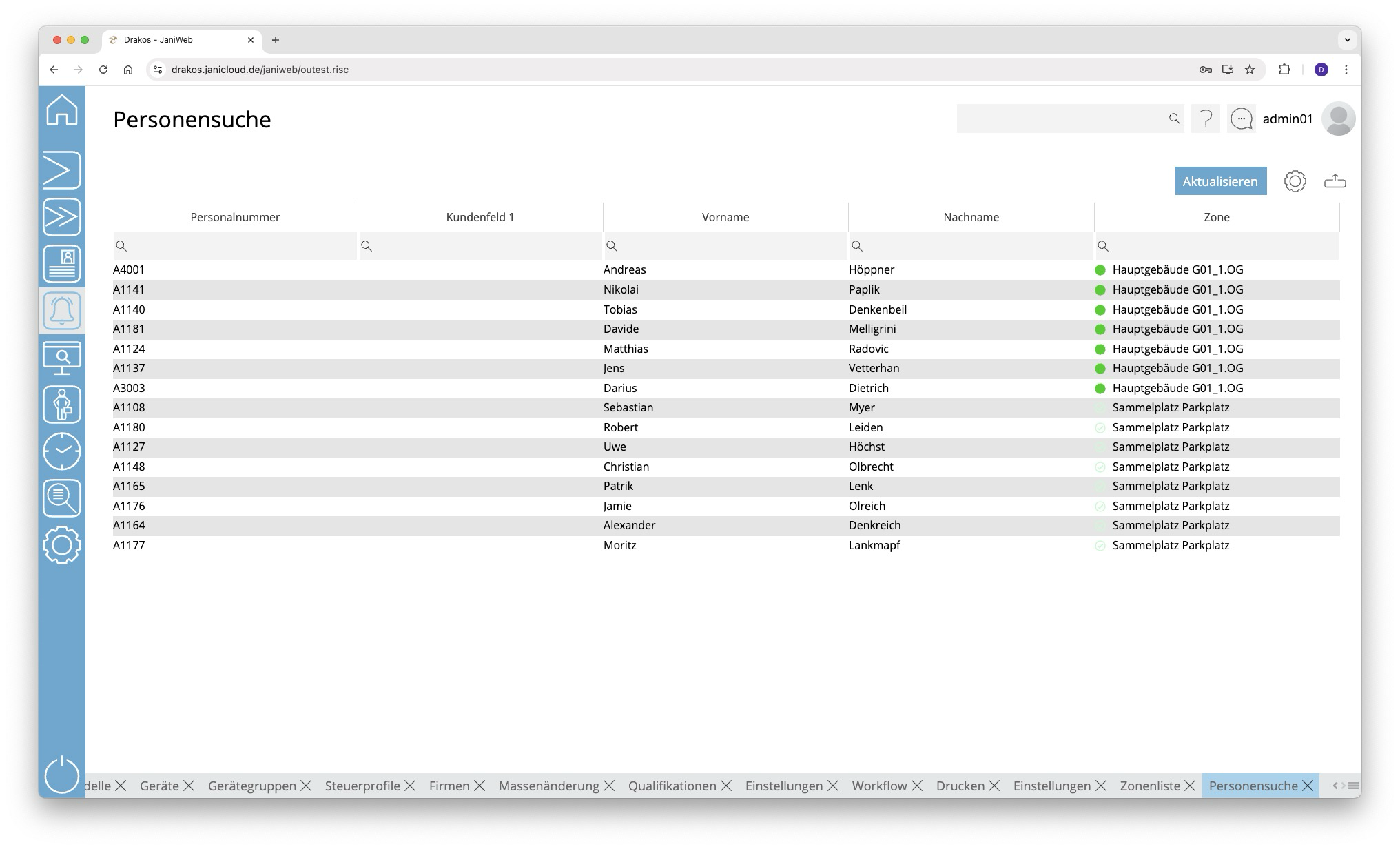 Die Personensuche gibt Ihnen einen Überblick, welche Personen sich in welcher Zone befinden.
