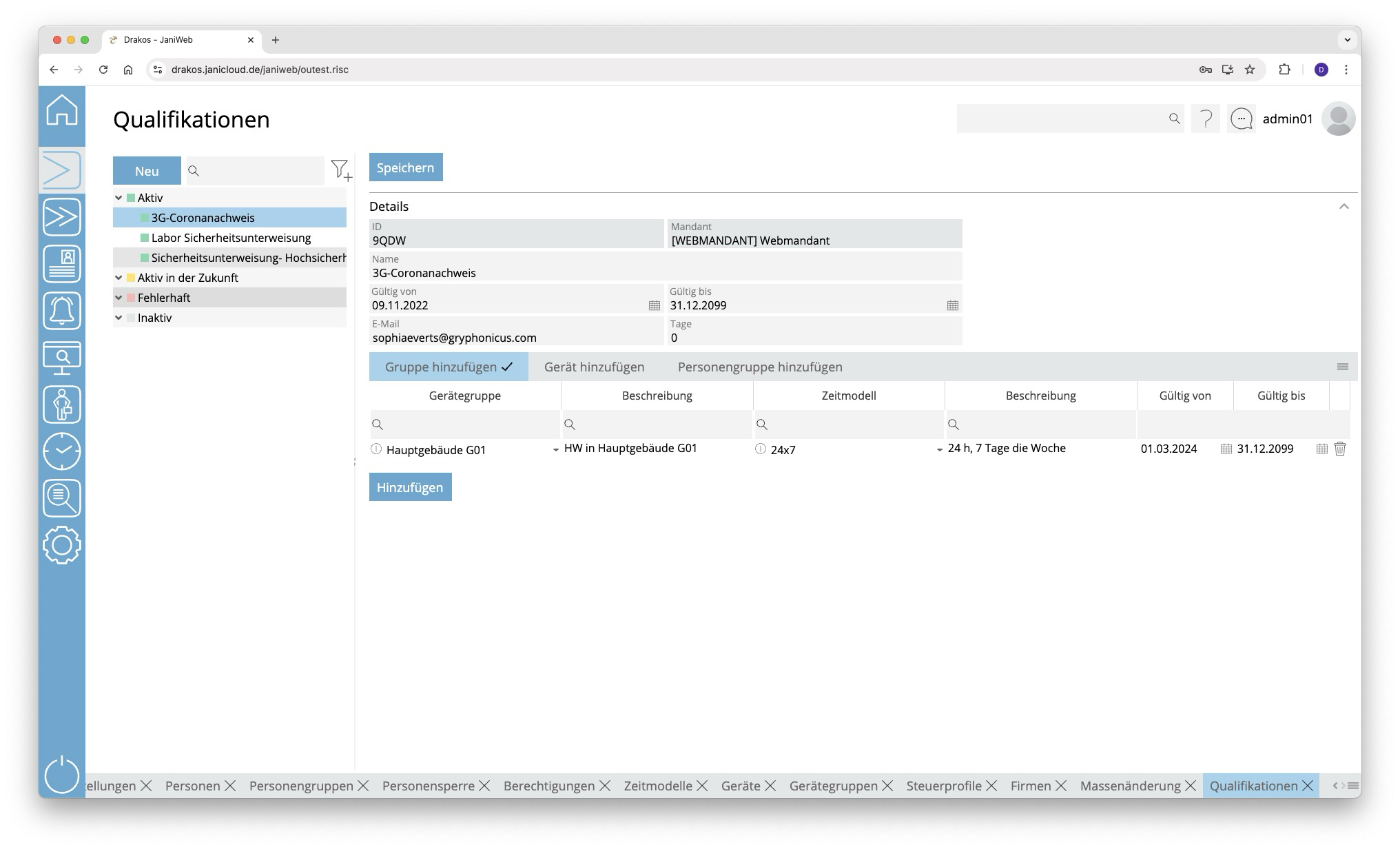 1. Wenn die Gültigkeit nicht gültig ist, wird Personen dieser Personengruppe der Zutritt an denen der Qualifikation zugewiesenen Geräten/Gerätegruppen verwehrt.