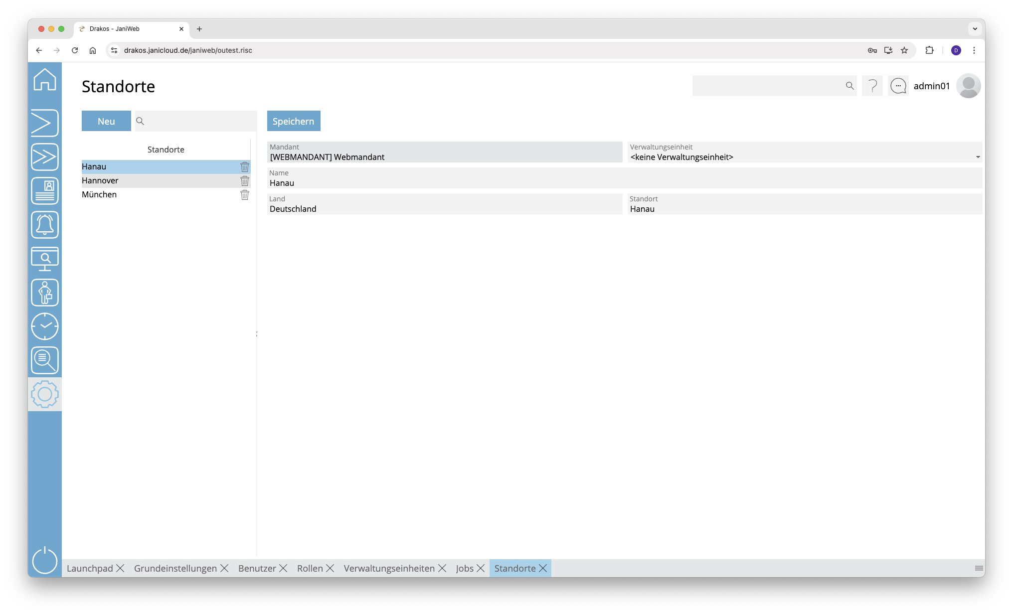 Über den Menüpunkt Standorte können Sie verschiedene Standorte innerhalb von JaniWeb verwalten.
