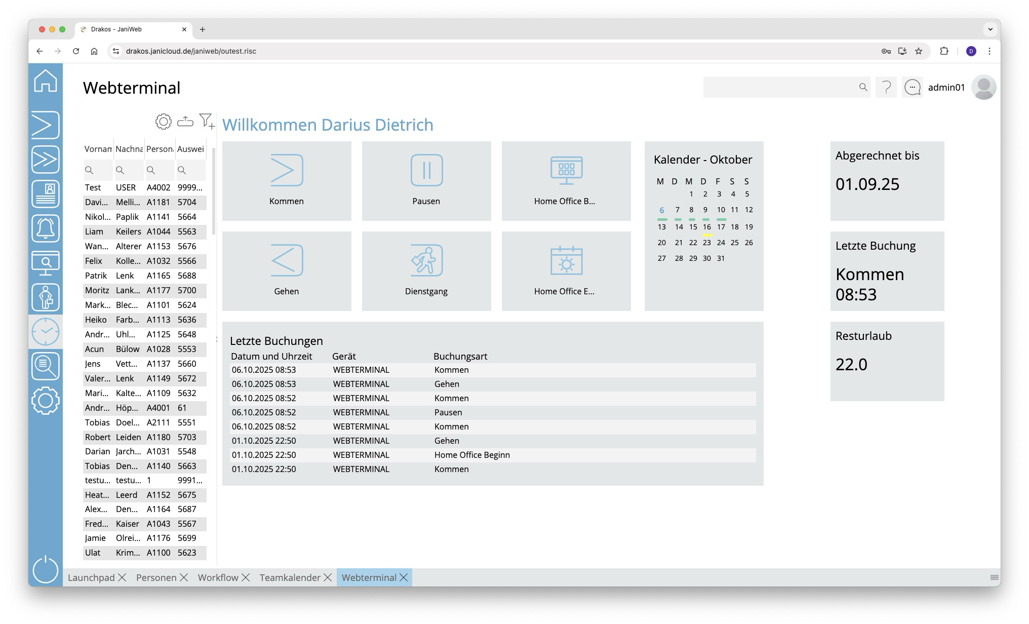 Das Webterminal bietet Ihnen die Möglichkeit, Zeitbuchungen über einen Browser zu erfassen.