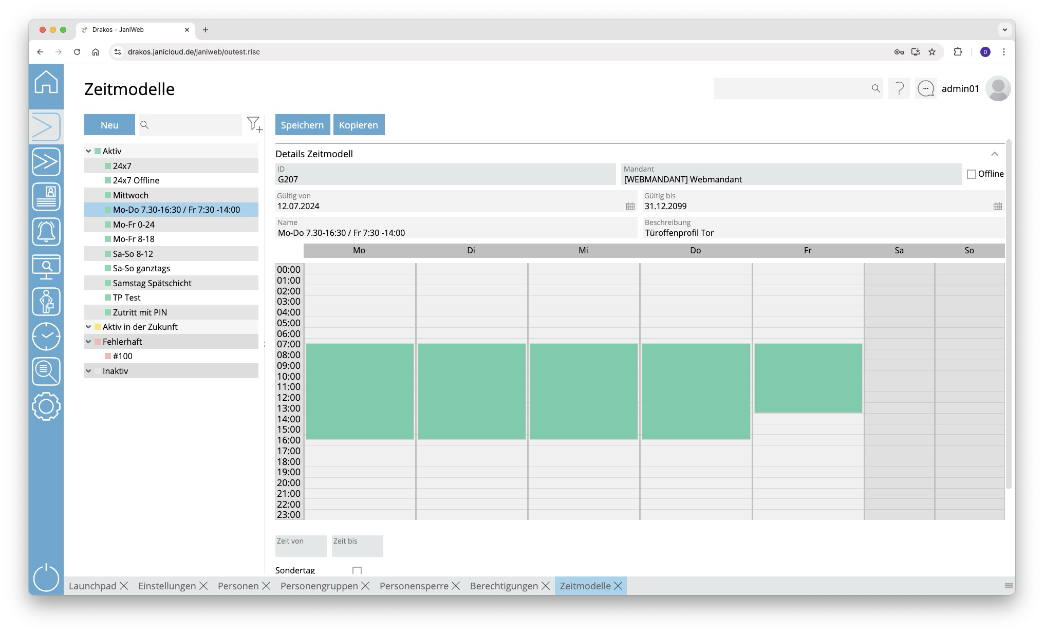 Sie können ein vorhandenes Zeitmodell kopieren, um es als Basis für ein neues Zeitmodell zu verwenden. Drücken Sie oben auf Kopieren, um nehmen Sie die gewünschten Änderungen vor. Drücken Sie anschließend auf Speichern.